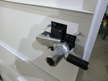 Дверь оснащена одним замком с двумя дополнительными прижимами в верхней и нижней части двери для обеспечения герметичности.